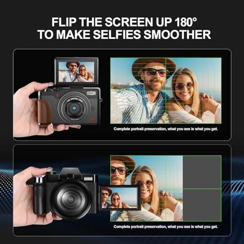 【56MP Digital Camera with Flip Screen】:The digital camera uses the latest CMOS measurement system to capture high-definition 4K videos and 56MP photos, without the need for complex manual settings, while automatically providing natural color images. Cameras for photography has a 3-inch touch screen and can rotate 180 degrees, allowing you to see what’s being recorded or view it while taking a vlog from any angle.