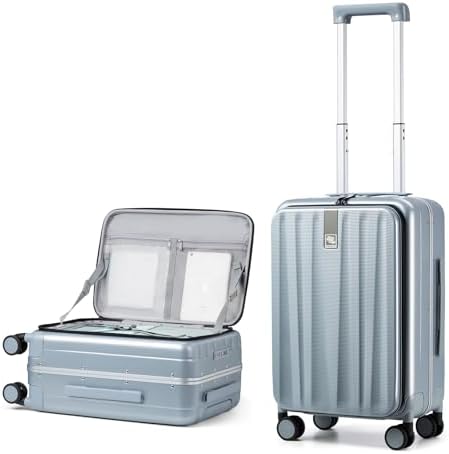 【DIMENSION】20 inch luggage measures 13.81”x9.25”x21.46” (35×23.5×54.5cm) including wheels and handles; packing dimensions are 13.81” x 8” x 19”, Weight 7.91 LB. Packing Capacity 33.6 L.Carry on luggage airline approved and fit in the overhead cabin with room to spare.