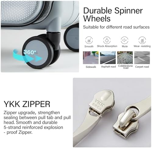 【HIGH QUALITY ACCESSORIES】Benefit from brand YKK zipper that is smooth and durable, providing you with more security when travel, 8 multi-directional spinner wheels for easy maneuvering and rolling, Adjustable 4-step telescopic handle system, with an ergonomic grip Lock.