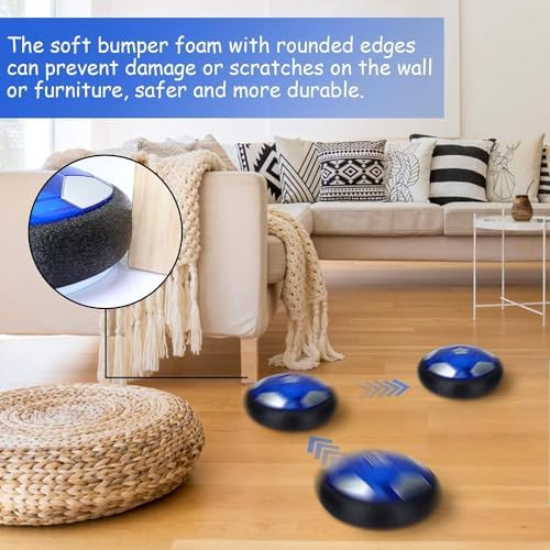 ⚽【Full of fun] This rechargeable hover football has built-in motors and fans to create an air flow so that the floating ball can float on a flat flight.Super soft padded bumper, protects your M and wall from damage.Conversely, it creates a good rebound for endless fun. A great parent-child toy with which everyone will have fun.