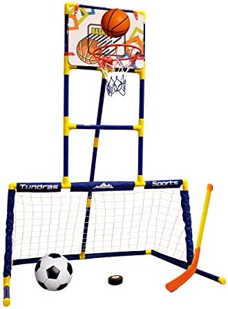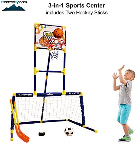 This set has all the sports and all the fun they will ever need or want. The combination of different sports will keep them entertained for hours,… playing basketball, hockey, or soccer (Or all three at once).
