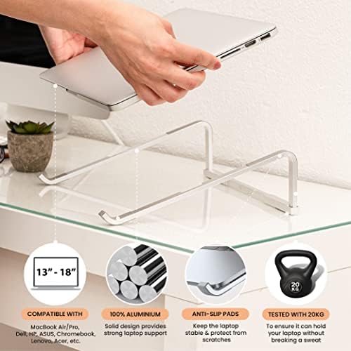 2. Durable & Tough: made from 100% premium aluminium. Tested with 20kg to ensure it holds any computer with ease. Anti-slip silicone pads will keep your laptop in place and protect from scratches